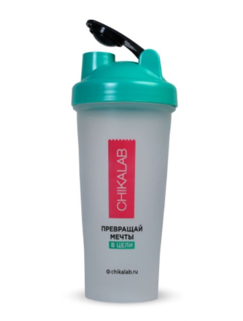 Спортивный шейкер объемом 600 миллилитров, с мерной шкалой и сеточкой внутри для эффективного размешивания.