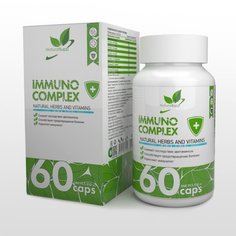 IMMUNO COMPLEX - комплексная пищевая добавка, способствует общему укреплению организма, повышению иммунитета при сезонных простудных заболеваниях.